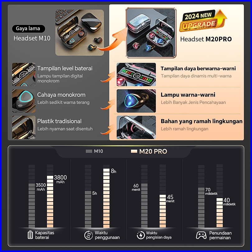Tws M20 Wireless Bluetooth Headset Gaming 3800mah Mobile Power Hifi 10d Sound Quality Bluetooth 5.3 Super Bass Clear Mic