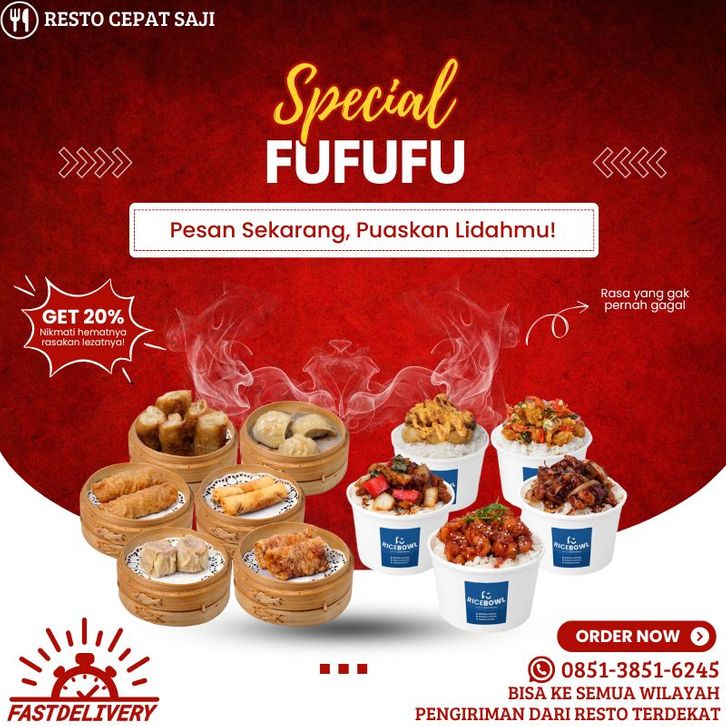 NgeDimSumRameRame 1, NgeDimSumRameRame 2, Seru Sendiri, Seru Berdua, Seru Bertiga, Makan Rame-Rame 1, Makan Rame-Rame 2, FU Bento Katsu, FU Bento 1, FU Bento 2, FU Bento 3, FU Bento 4, Mantega Chicken, Kungpao Chicken, Blackpepper Chicken, Chicken Katsu Teriyaki, Korean Chicken, Matah Chicken, Nasi Telur Kecap, Nasi Telur Sambal Bawang, Crispy Chicken Mentai, Crispy Chicken Cheese, Swekiau Ayam (4pcs), Pangsit Ayam (4pcs), Money Bag (4pcs), Mantau (4pcs), Pao Chasiu (4pcs), Kuotie (4pcs), Cakwe Ayam (4pcs), Lumpia Kulit Tahu Steam (4pcs), Lumpia Kulit Tahu Goreng (4pcs), Lumpia Goreng (4pcs), Siomay Ayam (4pcs), Pao Chocolate (4pcs), Money Bag (2pcs), Pangsit Ayam (2pcs), Swekiau Ayam (2pcs), Lumpia Kulit Tahu Steam (2pcs), Lumpia Kulit Tahu Goreng (2pcs), Mantau (2pcs), Pao Chasiu Ayam (2pcs), Cakwe Ayam (2pcs), Kuotie Ayam (2pcs), Lumpia Goreng (2pcs), Siomay Ayam (2pcs), Pao Chocolate (2pcs), Add On Mozarella (4pcs), Add On Mentai (4pcs), Add on Mentai (2pcs), Add on Mozarella (2pcs), Add on Rice, Add On Chili Oil, Add on Sambal Bawang, Coca Cola, Teh Botol Kotak, Air Mineral, Fruit Tea