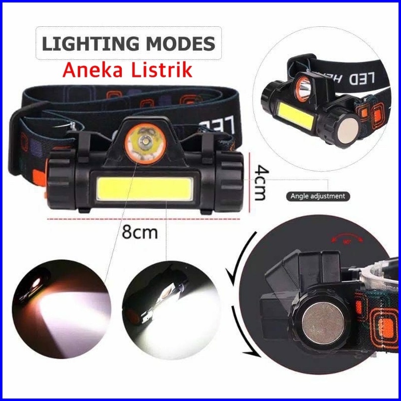 Senter Kepala Led Cas Xpe Super Terang Murah Headlamp Cob Rechargeable Plus Magnet