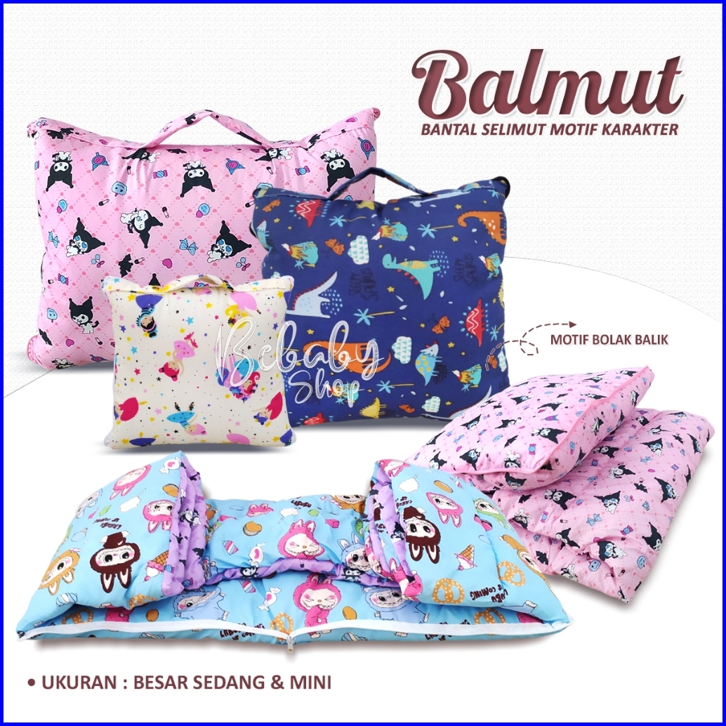 Bantal Selimut Balmut Motif Karakter Bolak Balik Size Mini Sedang Besar Labubu Kuromi Cinnamoroll