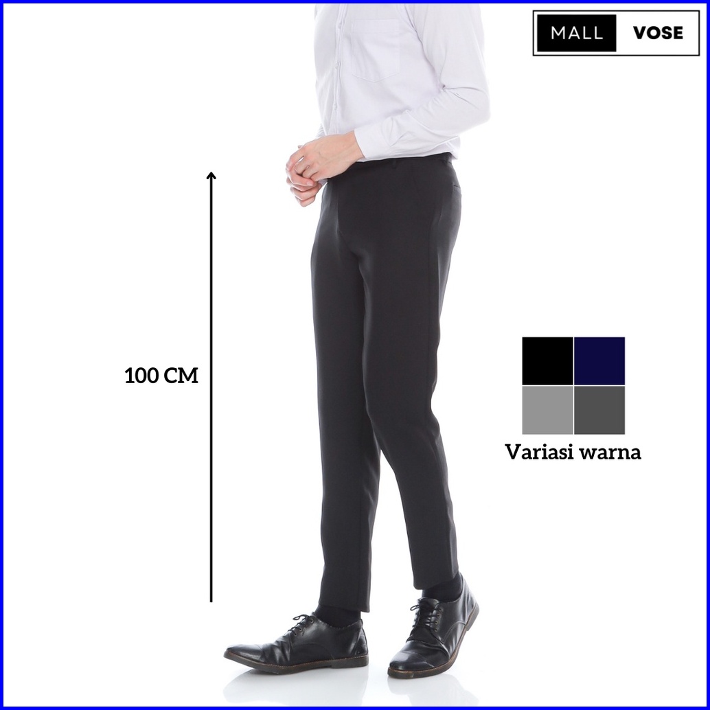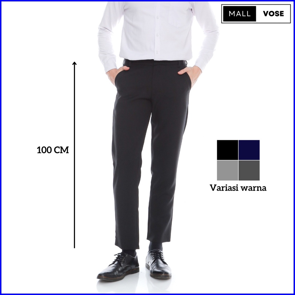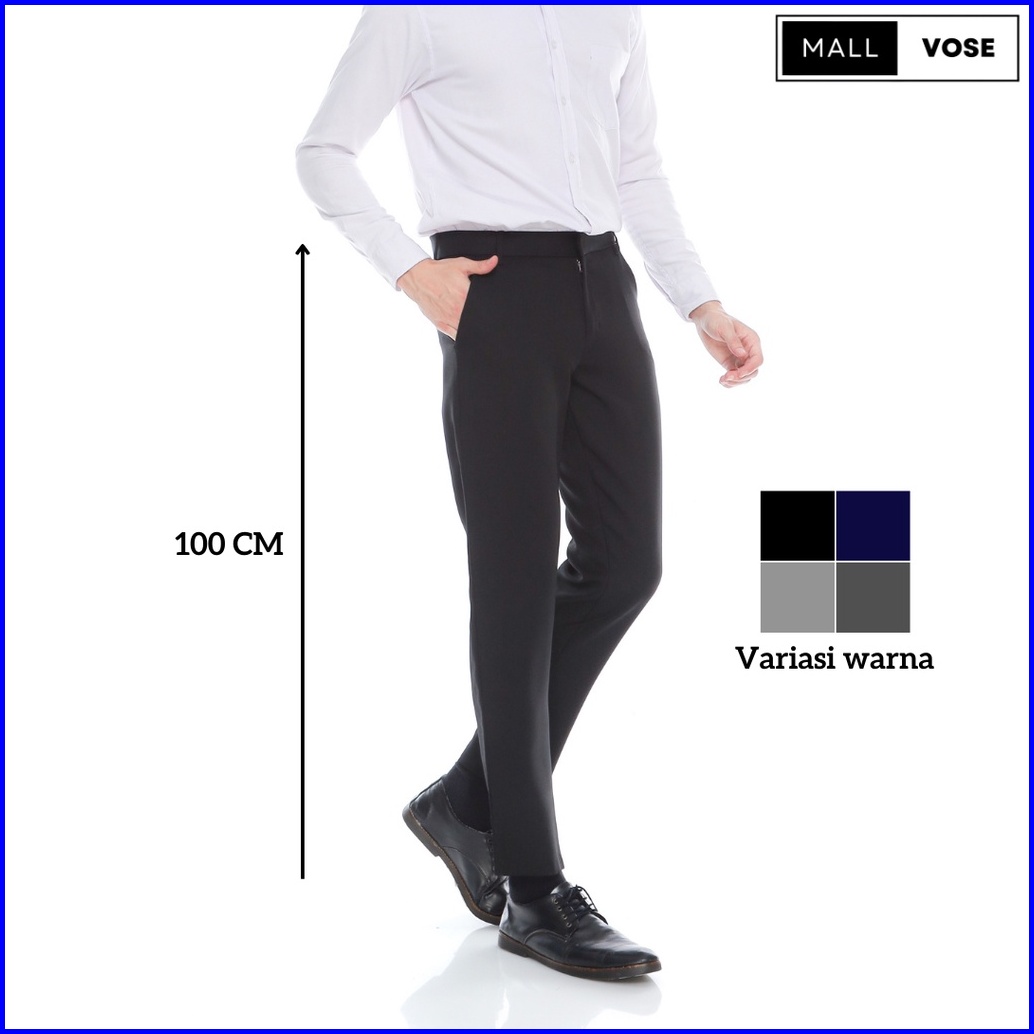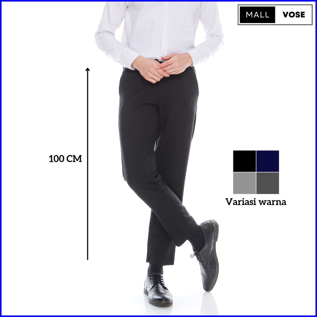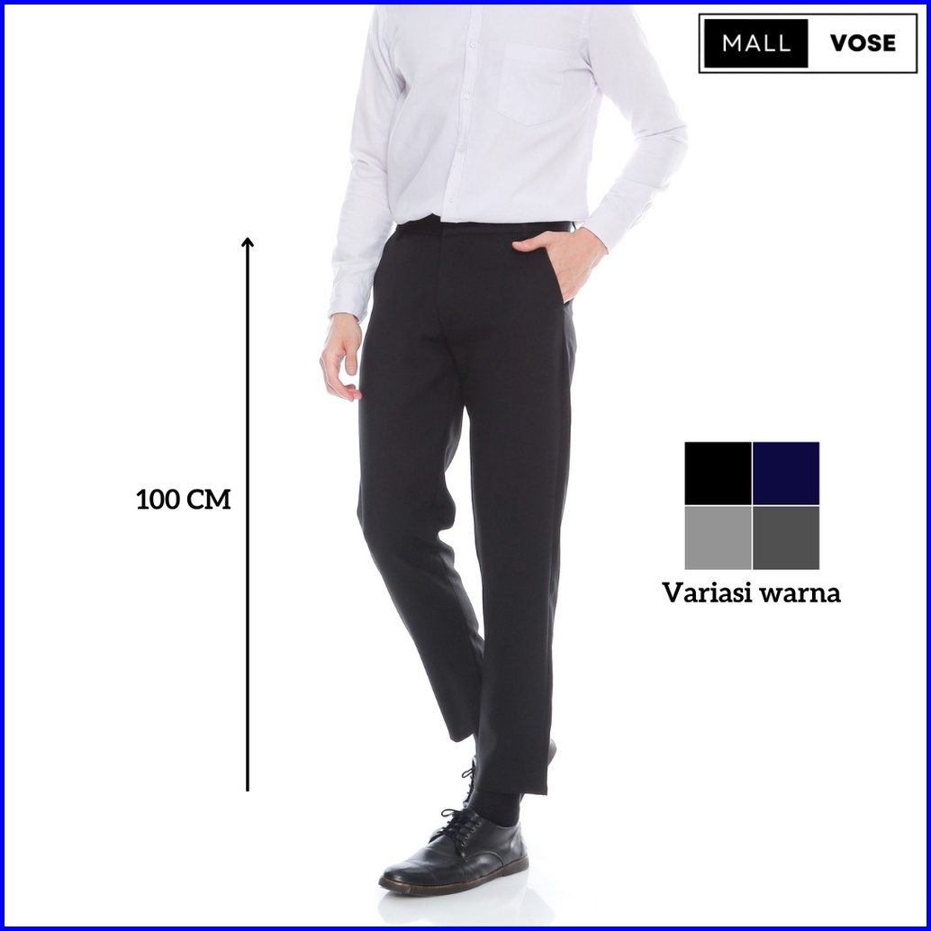 Mallvose - Celana Formal Kerja Hitam Jumbo Bahan Semi Woll Premium Panjang 100cm