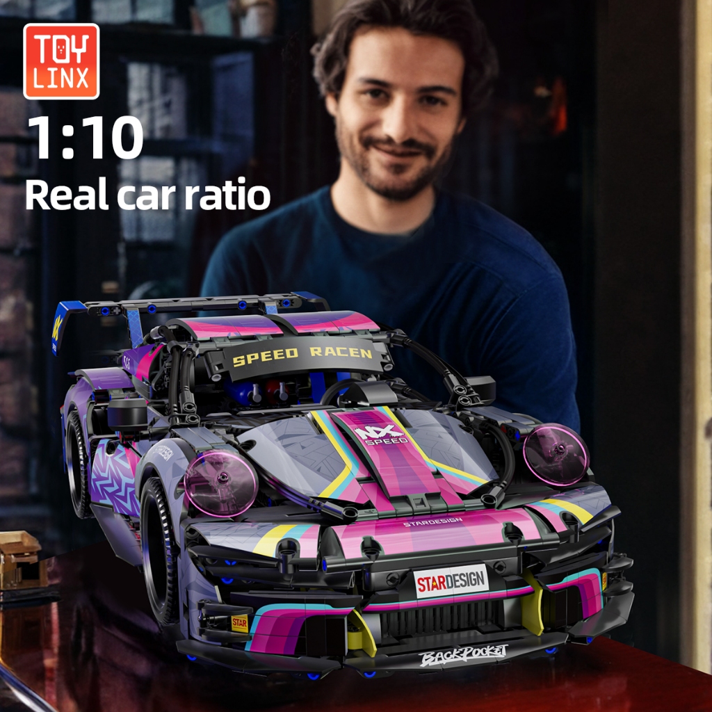 911 Harta Karun Mobil Olahraga Blok Bangunan Mainan 1:10 Merakit Mobil Bata Kecil Model Rc Hadiah Mobil untuk Anak-Anak