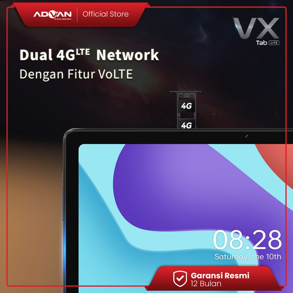 ADVAN Notebook Tab Vx Lite 10.4” Octa Core 2.0Ghz Tablet Dual Sim Card 4G LTE