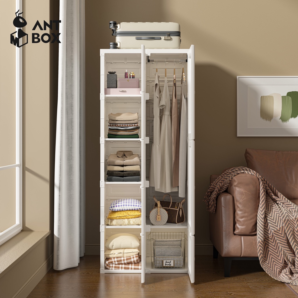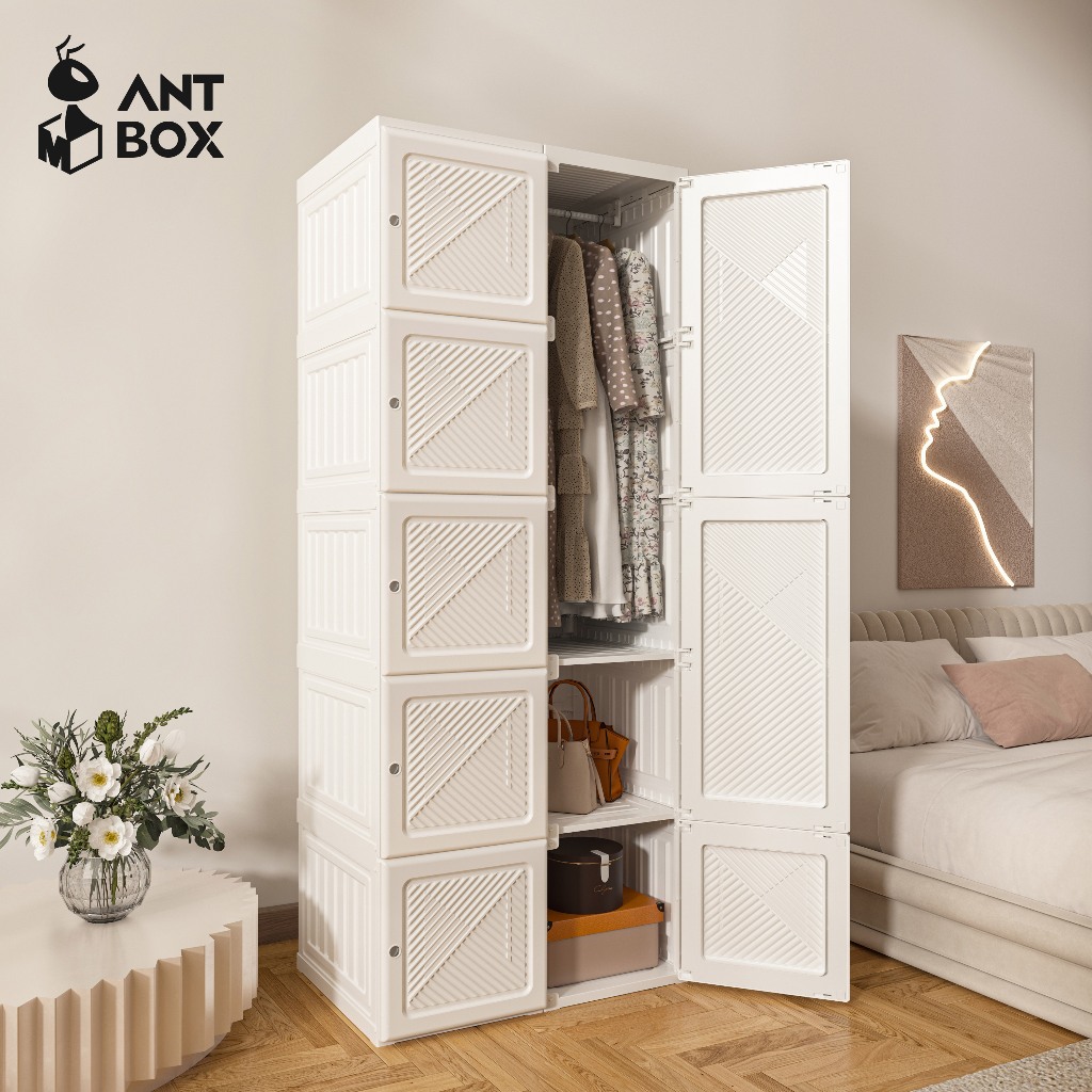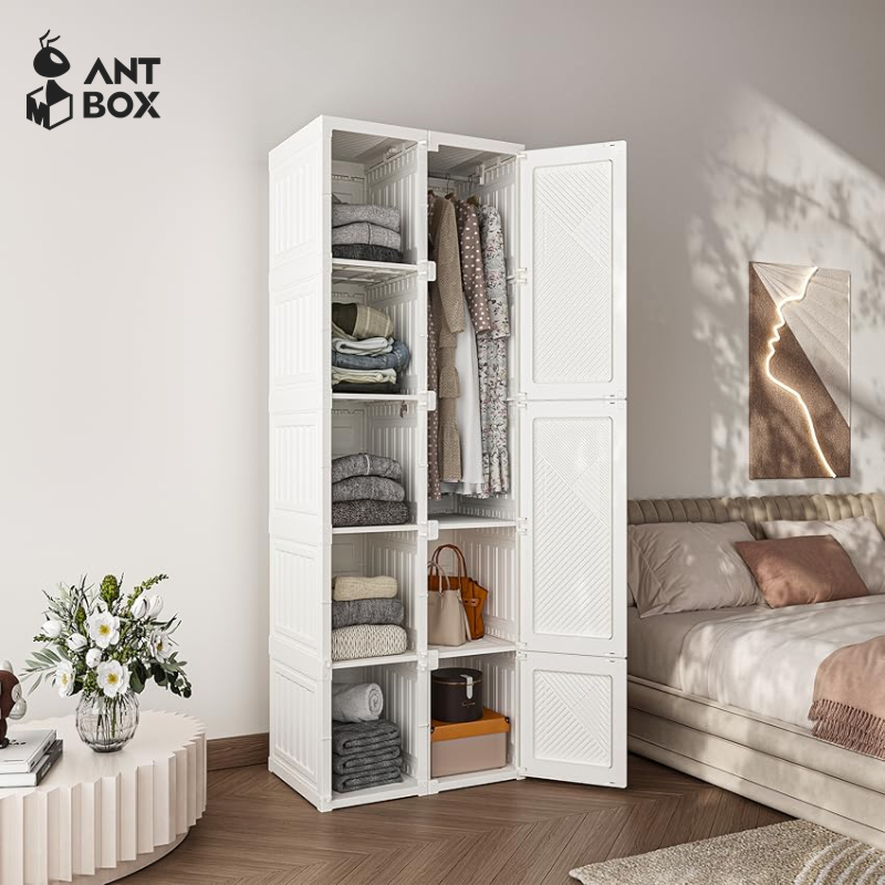 ANTBOX Lemari Baju Putih 10 Box 1 Gantungan 590L Wardrobe Pintu Putih Minimalis Lemari Pakaian Lipat