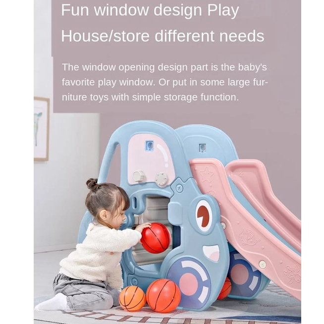 Perosotan Anak Bentuk Mobil / Mainan Anak Perosotan Dolphin Slide dengan Ring Basket