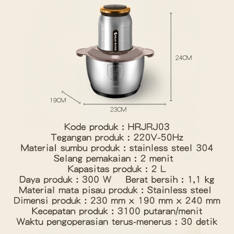 HAN RIVER Blender HRJRJ-S2BK food chopper penggiling daging Multifungsi gold 2L terlaris murah terbaru