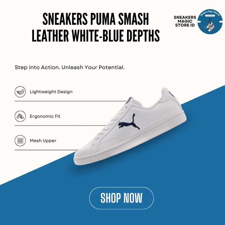 Sepatu Sneakers PUMA Smash Leather White-Blue Depths