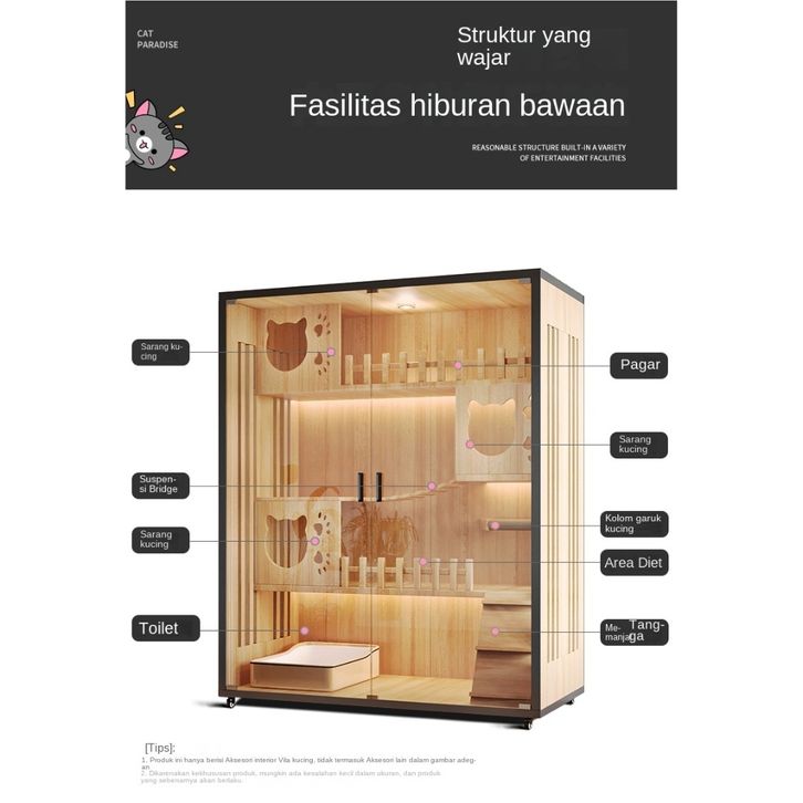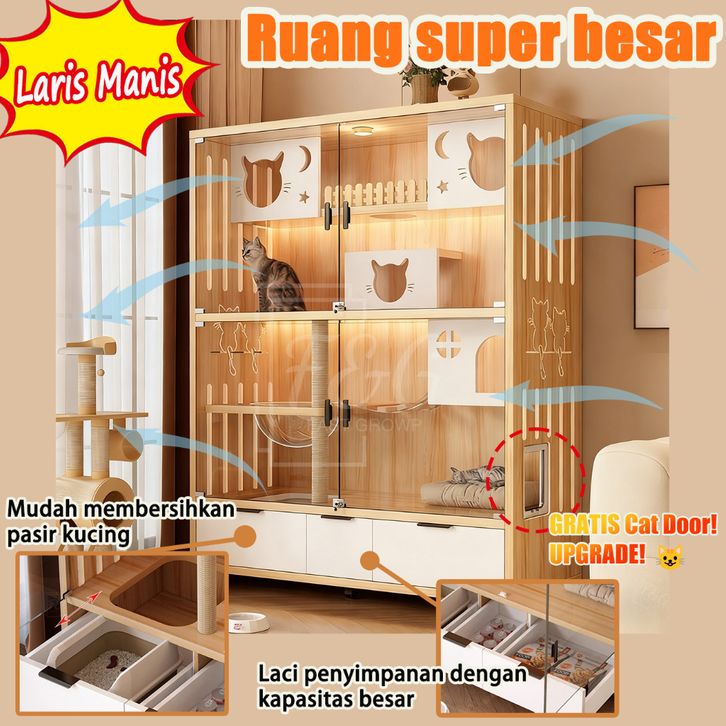 F&G Rumah Kucing Kandang Anti Scratch Wood Cat House Cat Rumah Villa Kandang Kucing Elegant Kandang Hewan Peliharaan