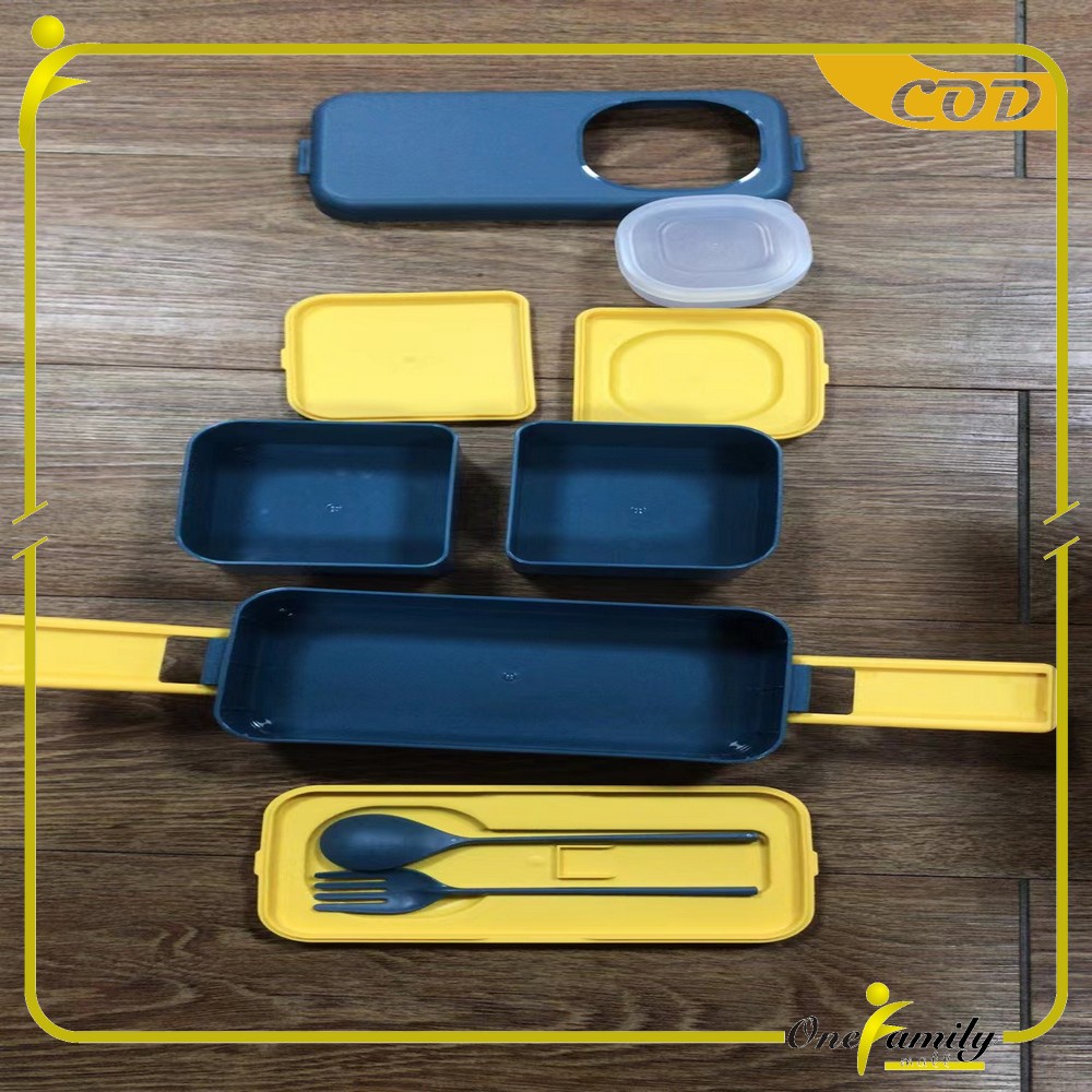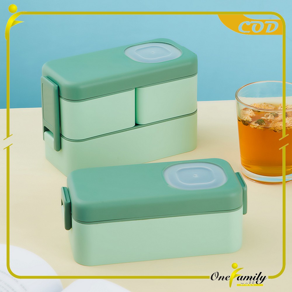 ONE-C779 Kotak Makan 2 Tingkat Portable 1050ML Ada Sauce Cup / Lunch Box 2 Layer / Rantang Makanan Set Anti Tumpah