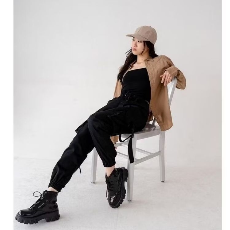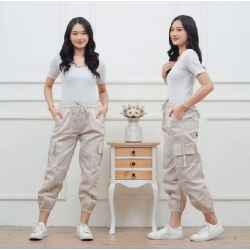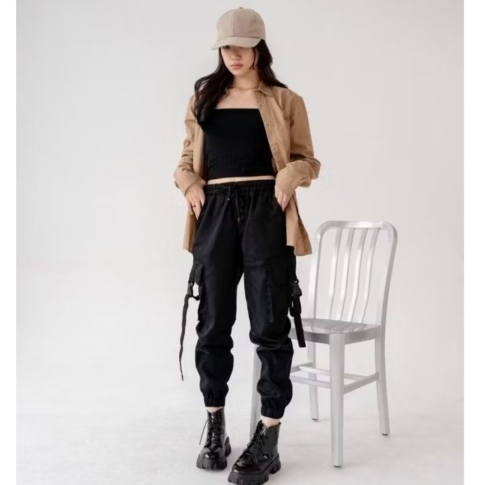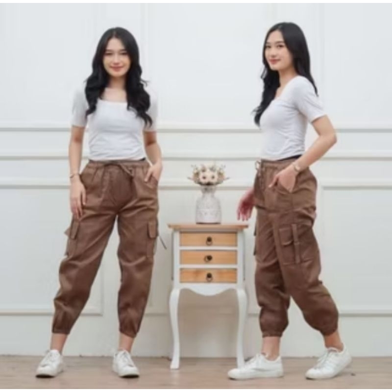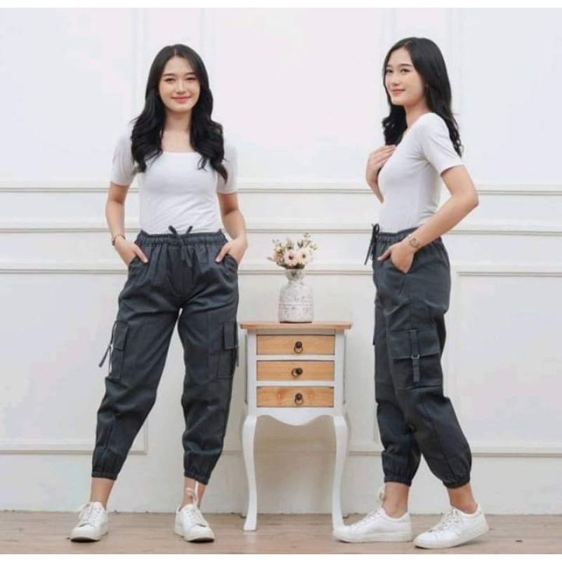 Celana Jumbo Joger Wanita Cargo / Cargo Pants Panjang Wanita Korean Style Katun Premium Nyaman Sporty Elegant Cantik