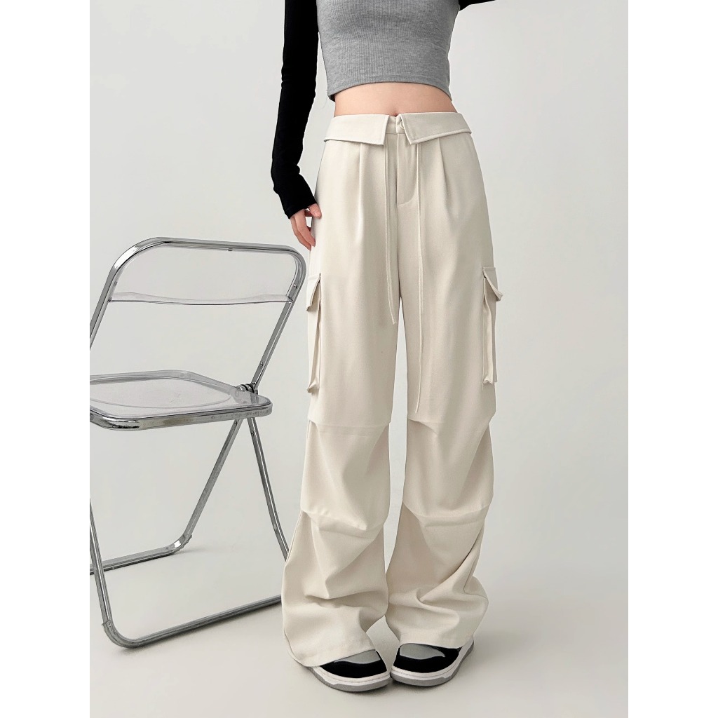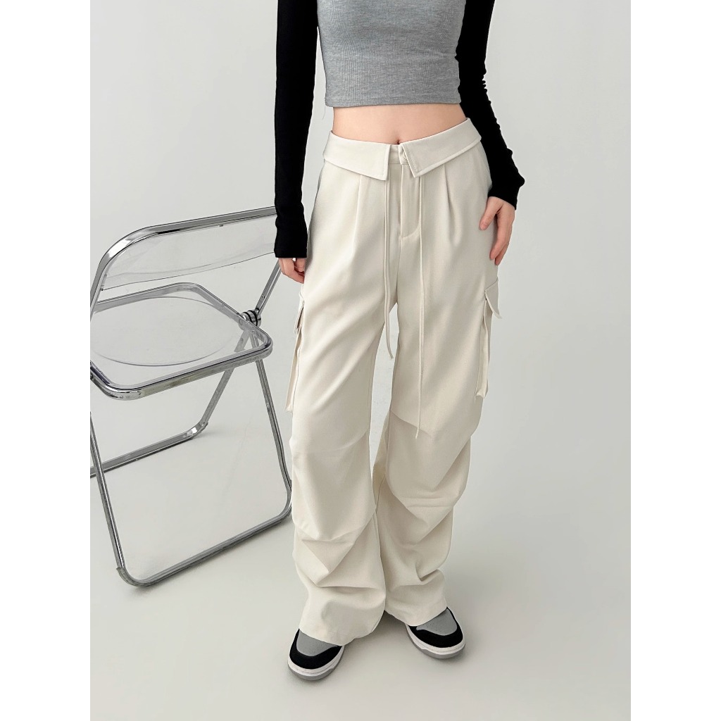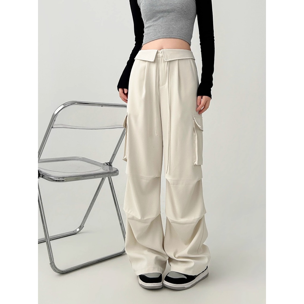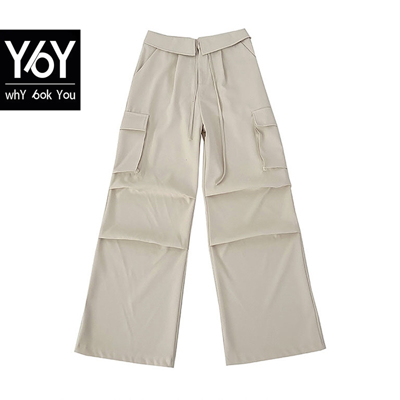 Y6Y - Celana Lurus Pinggang Tinggi Korea/Celana Kasual kelapak Gaya Baru/Kulot Gaya Jalanan Korea/Celana Aprikot Wanita
