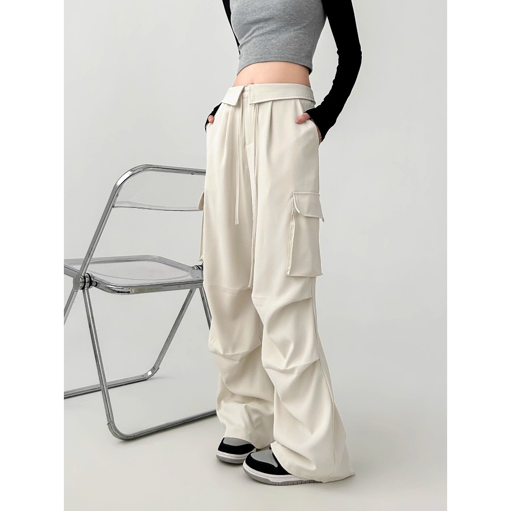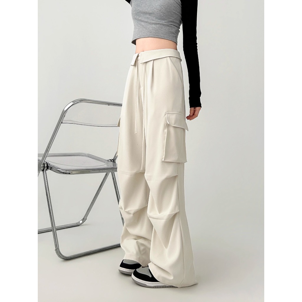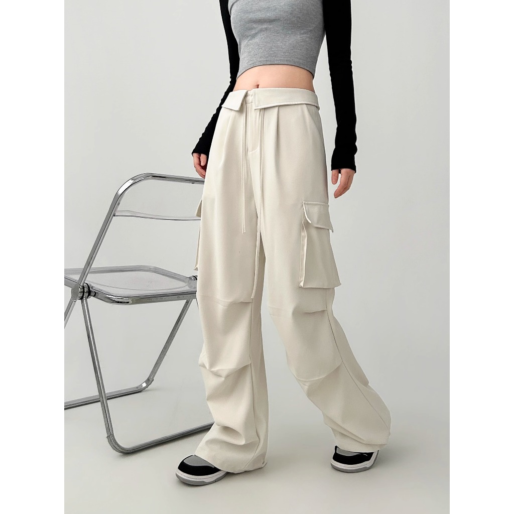Y6Y - Celana Lurus Pinggang Tinggi Korea/Celana Kasual kelapak Gaya Baru/Kulot Gaya Jalanan Korea/Celana Aprikot Wanita