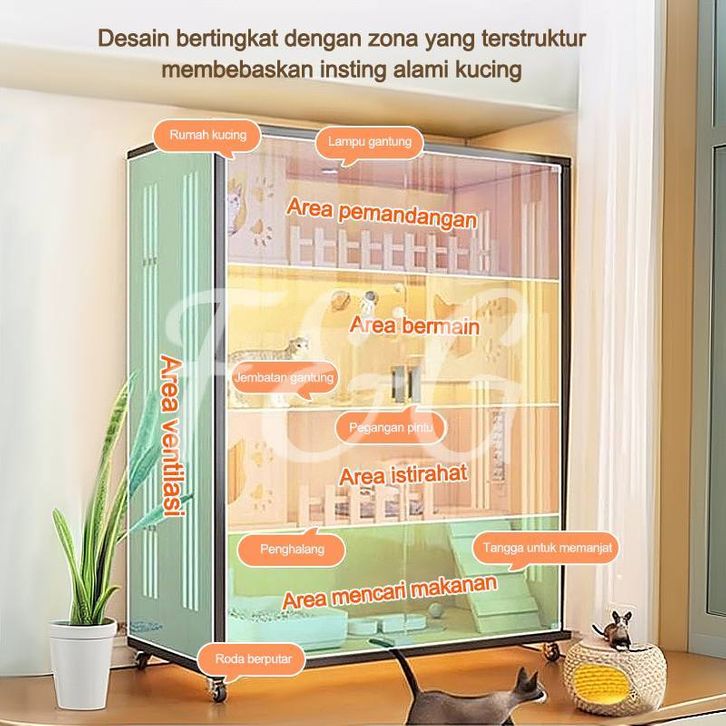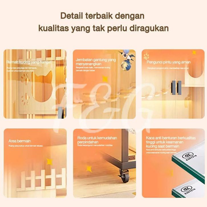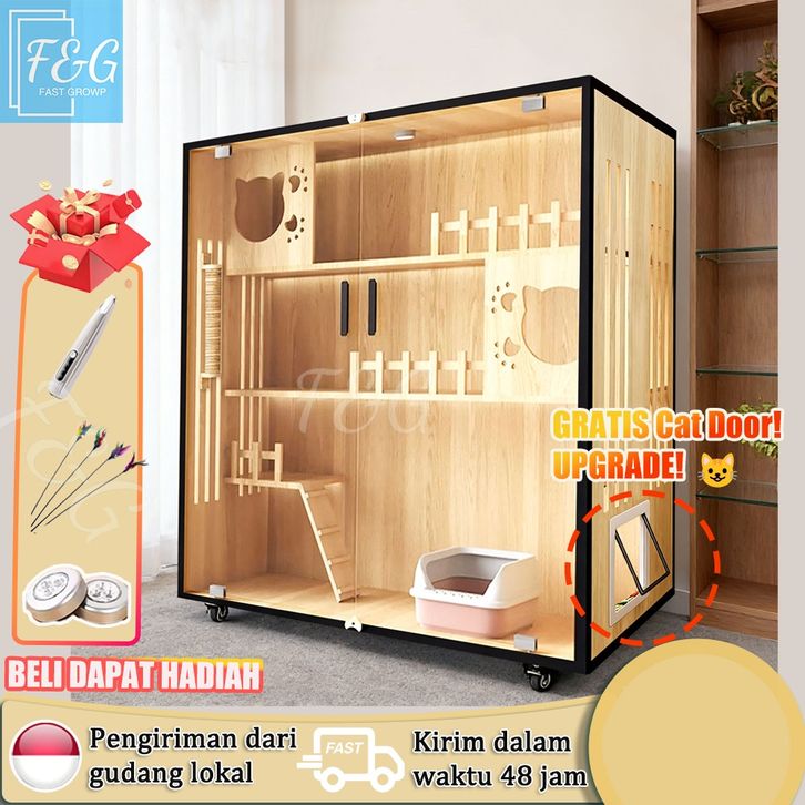 F&G Rumah Kucing Tahan Gores Yang Elegan Rumah Kucing Kayu Rumah Kucing Vila Kandang Bergerak Besar Kandang Kucing Besar