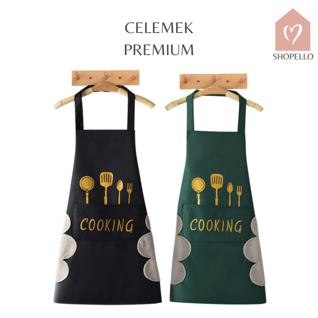 Shopello Celemek Masak Kain Plastik Anti Air Apron Masak Anti Basah Premium Bahan Tebal