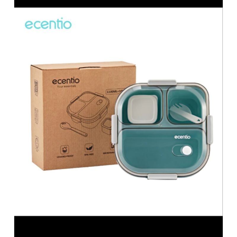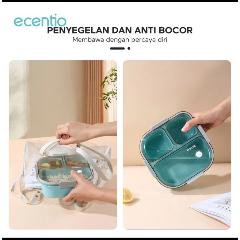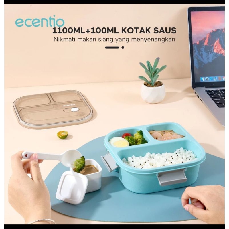 ecentio Kotak Makan Lunch Box 3 Grid 1100ml Misting Bekal Anti Tumpah Free Sendok