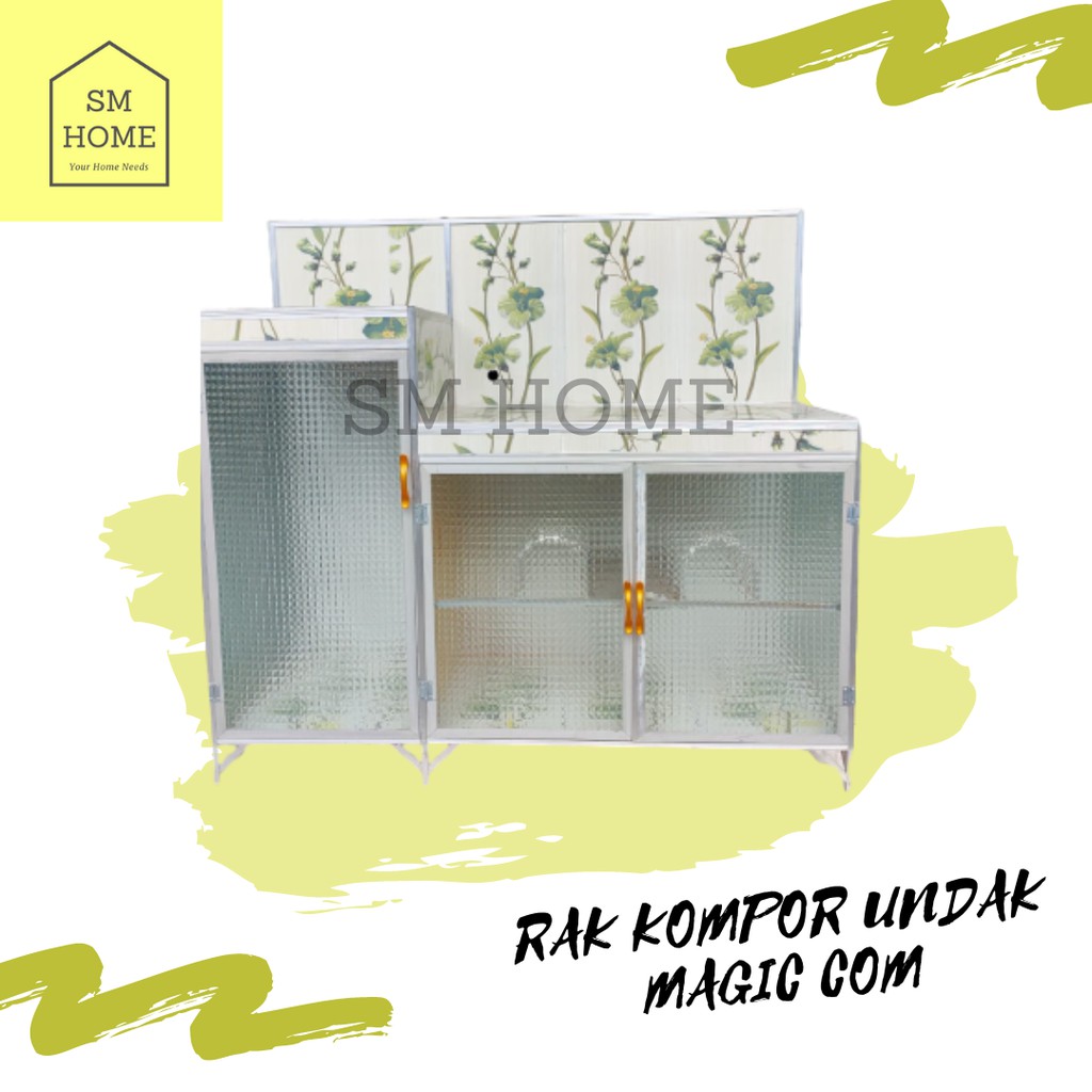 Meja Kompor 2 Tungku Rak 3 PINTU Aluminium Undak Magic Com Bawah Keramik Warna Meja Kompor Tahan Karat