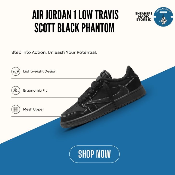 SEPATU Air Jordan 1 Low Travis Scott Black Phantom Allblack Fullblack