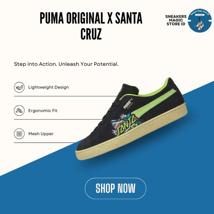 SEPATU SNEAKERS PUMA ORIGINAL X SANTA CRUZ SUEDE SHARK BLACK GREEN 38