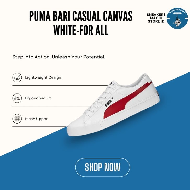 Sepatu Sneakers PUMA Bari Casual Canvas White-For All Time Red-Black