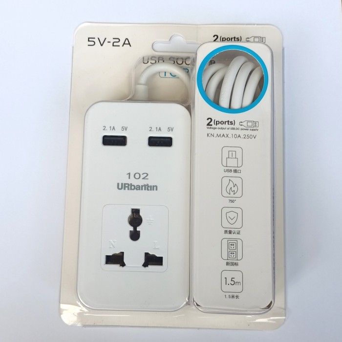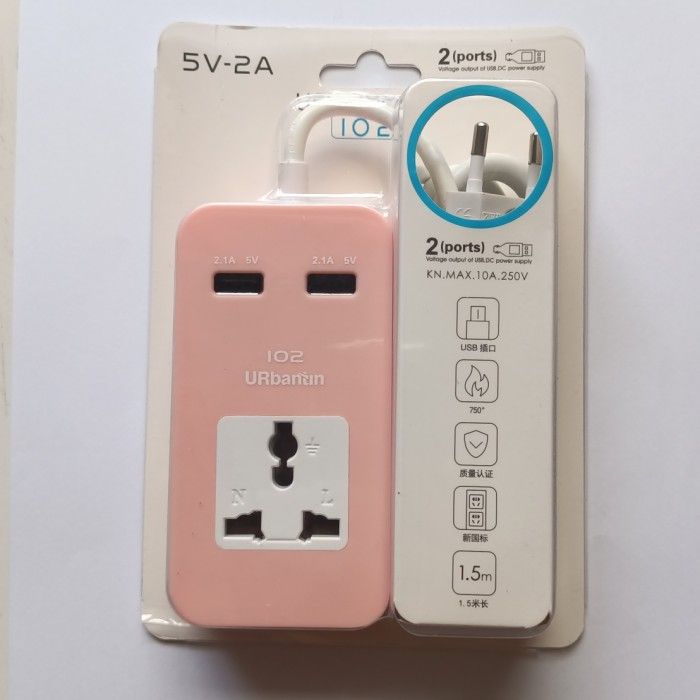 Stop kontak Colokan listrik USB charger hp 2 Ports usb kabel pjg 15m