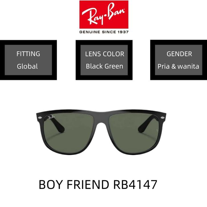 100. Asli kacamata hitam Ray-Ban BOYFRIEND Original RB4147 Black Green Sunglasses uv pria wanita