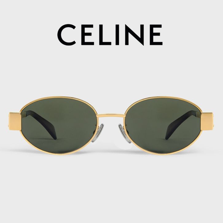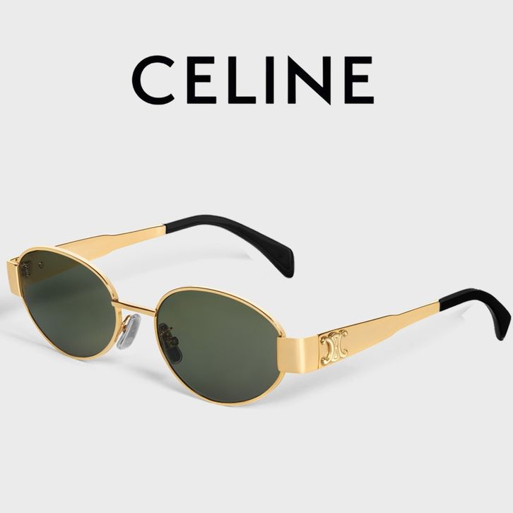 【100. Original】Kacamata Hitam CELINE Sunglasses TRIOMPHE METAL CL8003 Metal Kacamata Vintage Polished Gold Green