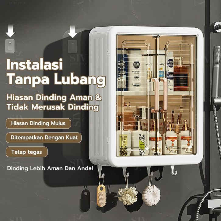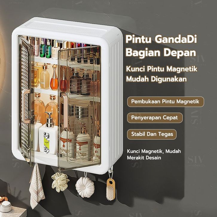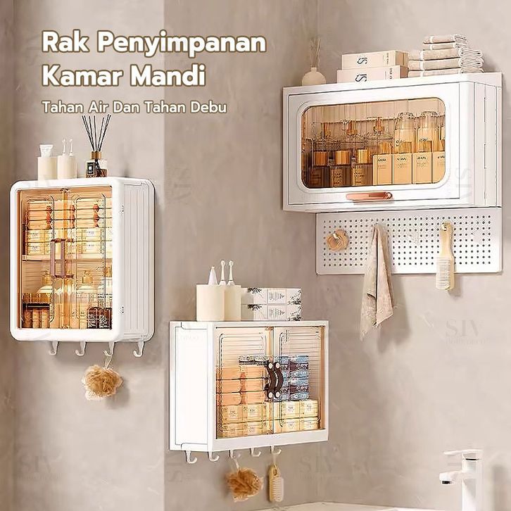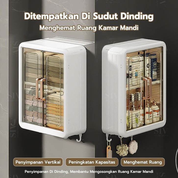 Lemari Plastik Kamar Mandi Dinding Aesthetic Kabinet Kamar Mandi Tertutup Kotak Rak Kamar Mandi