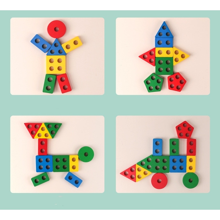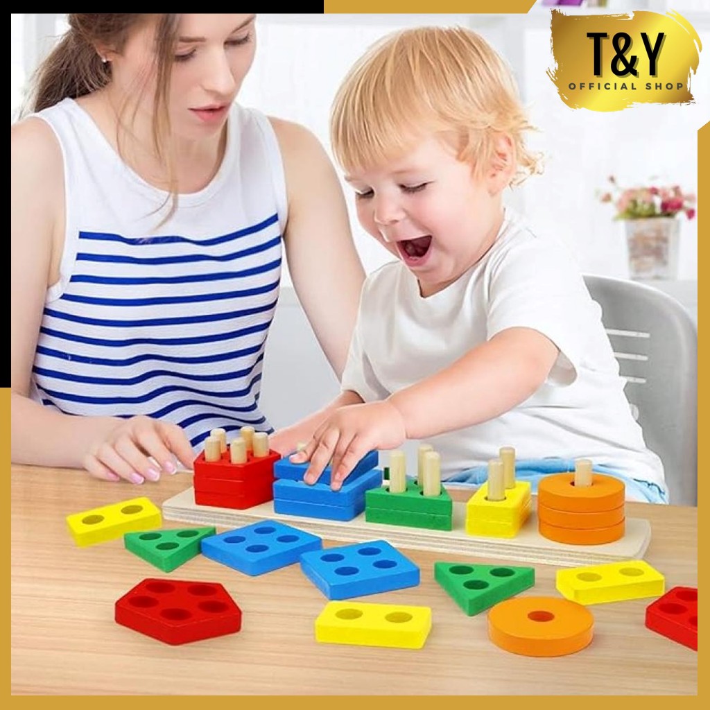 T&Y Woden Toys Geometric Board Montessori Papan Bentuk Warna 16pcs Mainan Edukasi Anak Puzzle Kayu Geometri Panjang Main