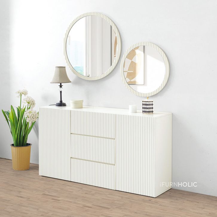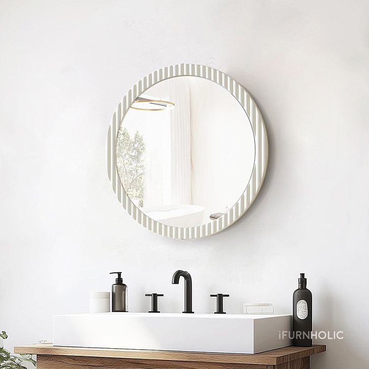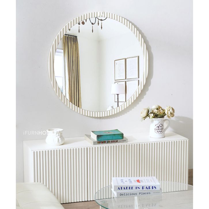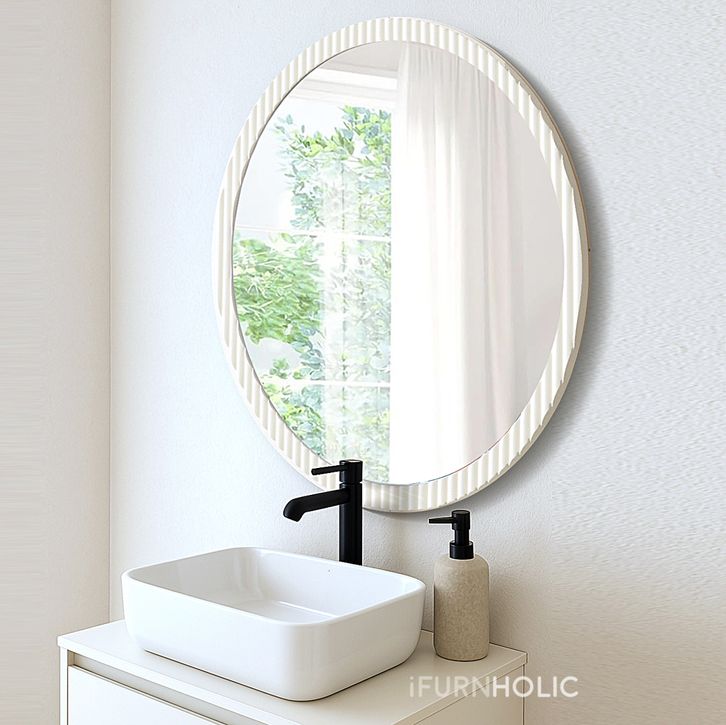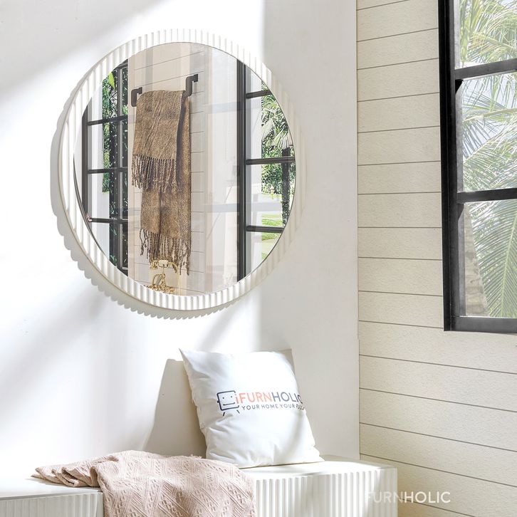 IFURNHOLIC Cermin Dinding Besar Bingkai Kayu 60 80 | Faye Round Mirror 60 80 Kaca Dinding