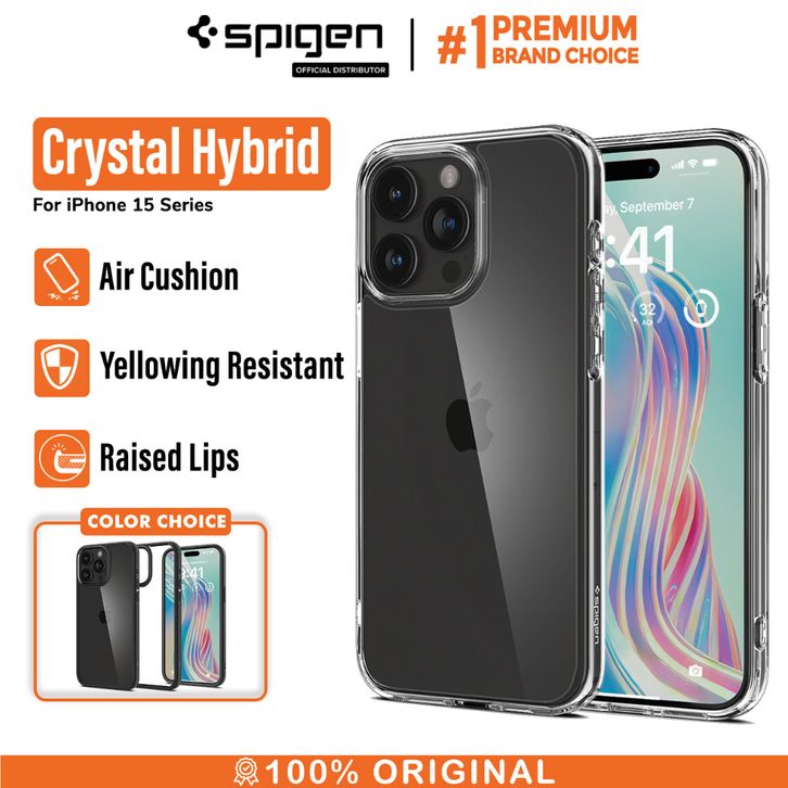 Case iPhone 15 Pro Max Plus Spigen Crystal Hybrid Slim Clear Casing