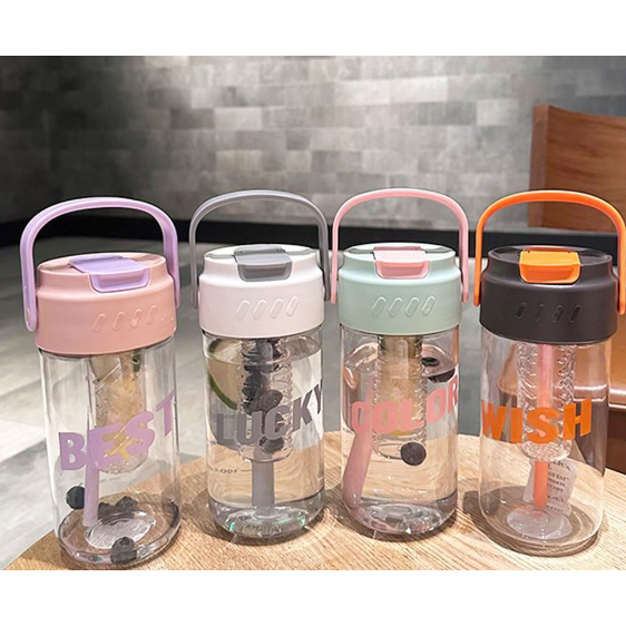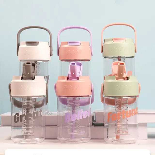 Botol Minum 800ML Transparan Infused Water Bottle Botol Minum Anak Sedotan dengan Pegangan