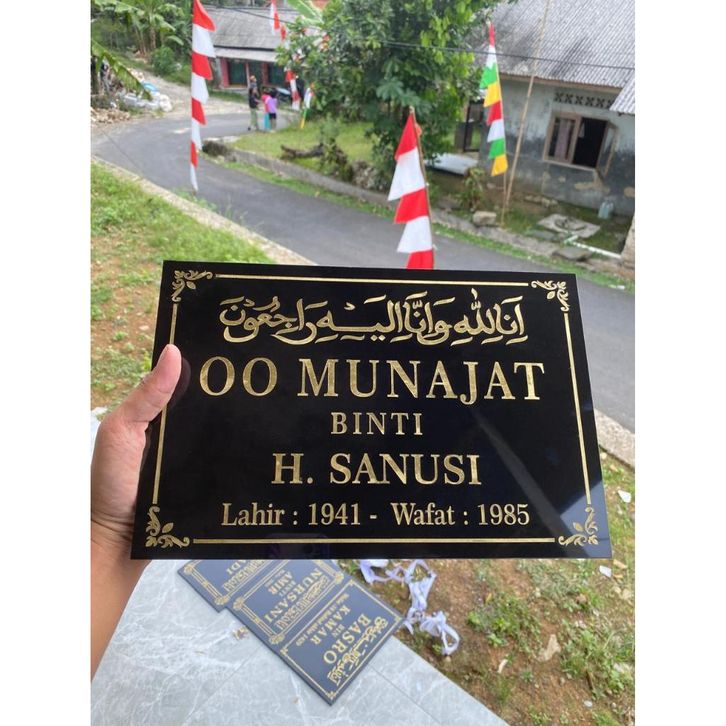 BATU NISAN UKURAN 30 X 20 GRANIT HITAM UKIR PLUS CAT EMAS TERLARIS DAN GARANSI PECAH MURAH MERIAH
