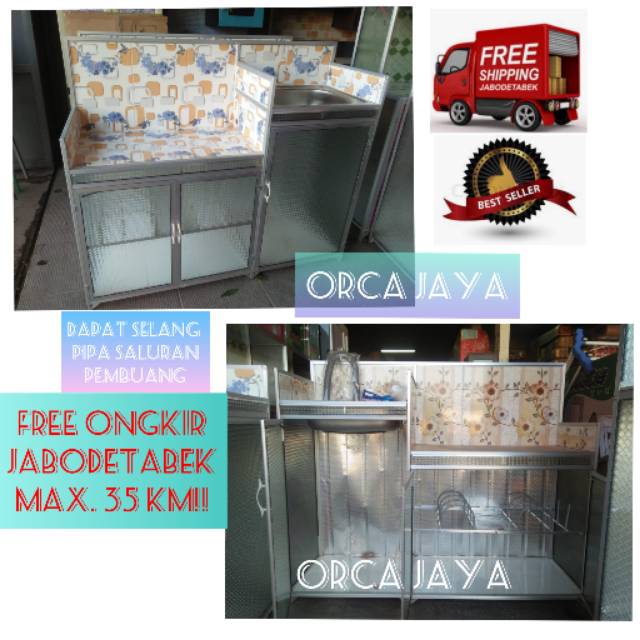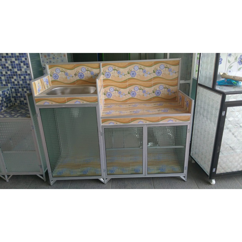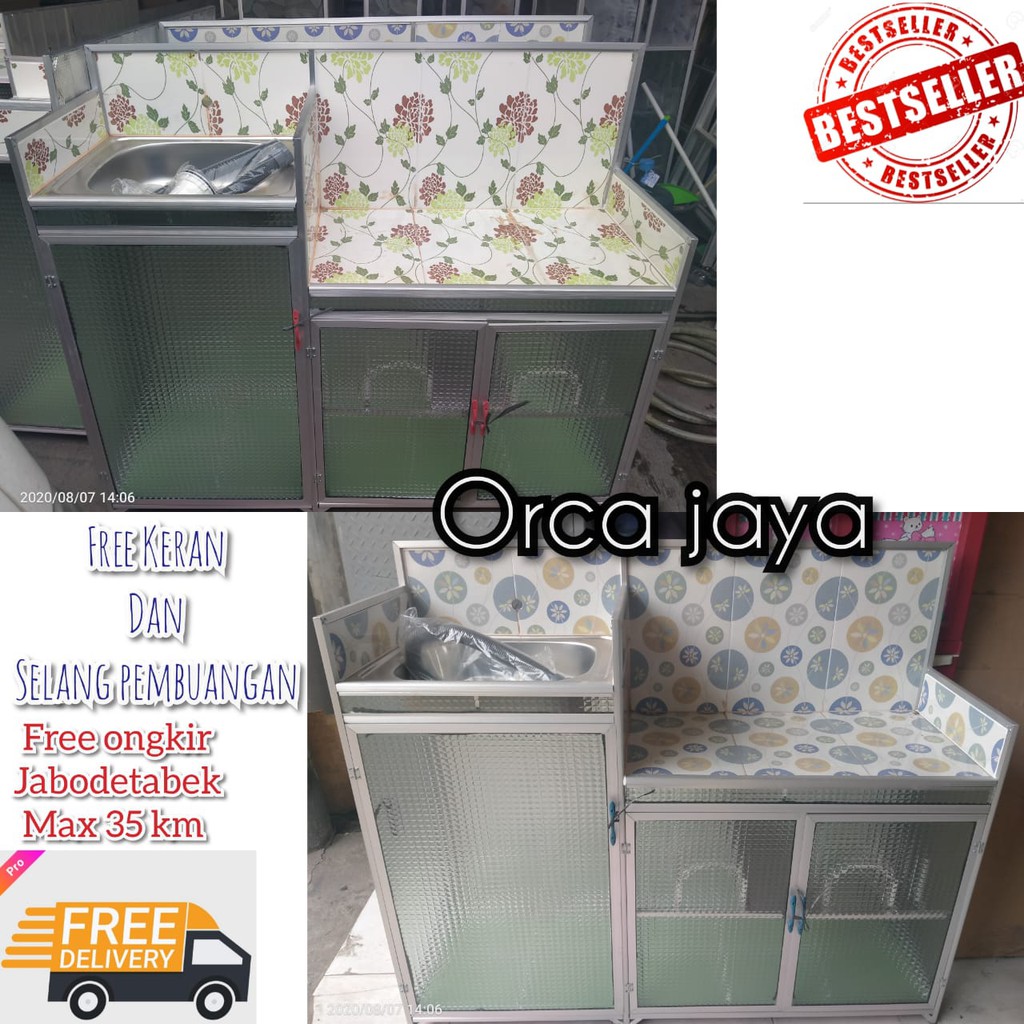 Meja Kompor 2 Tungu Alumunium Rak Piring Dengan Wastafel 3 Pintu CA Rak Piring Wastafel Rak Wastafel 3 Pintu
