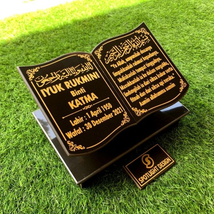 Batu Nisan Granit Ciri Makam / Kuburan Muslim / Islam Bentuk Buku + Dudukan Termurah