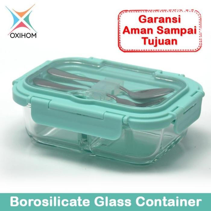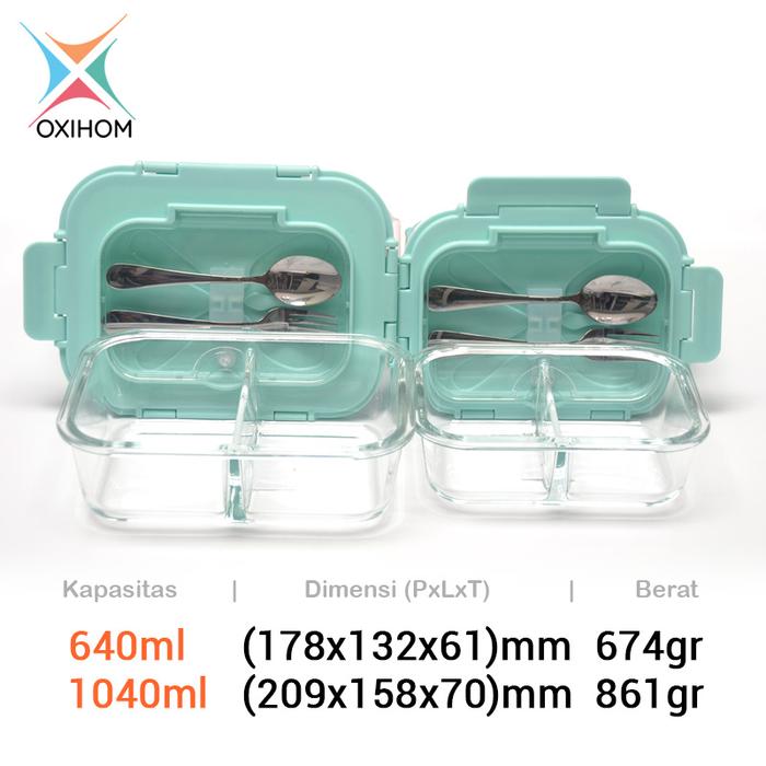 Oxihom Kotak Tempat Makan Kaca Glass Food Container Sendok Garpu GM Nasi Lauk Stainless Steel Kitchenware