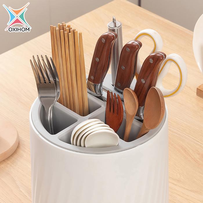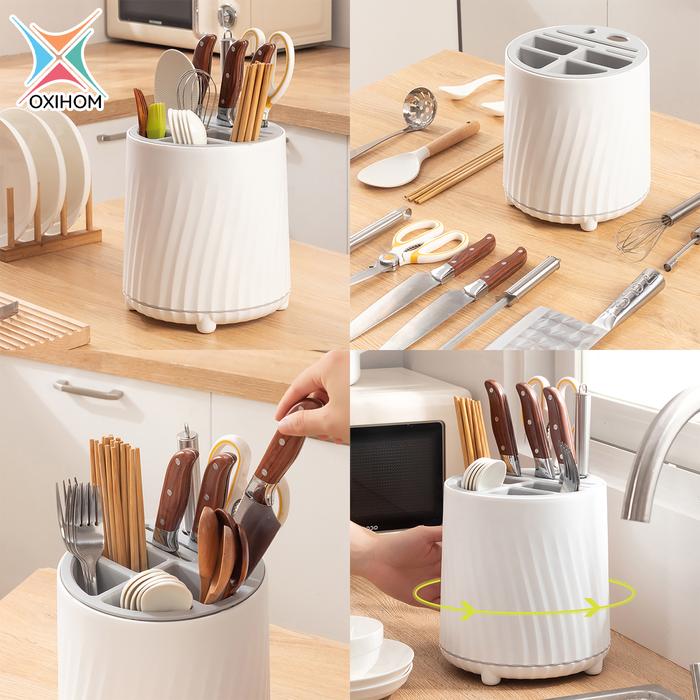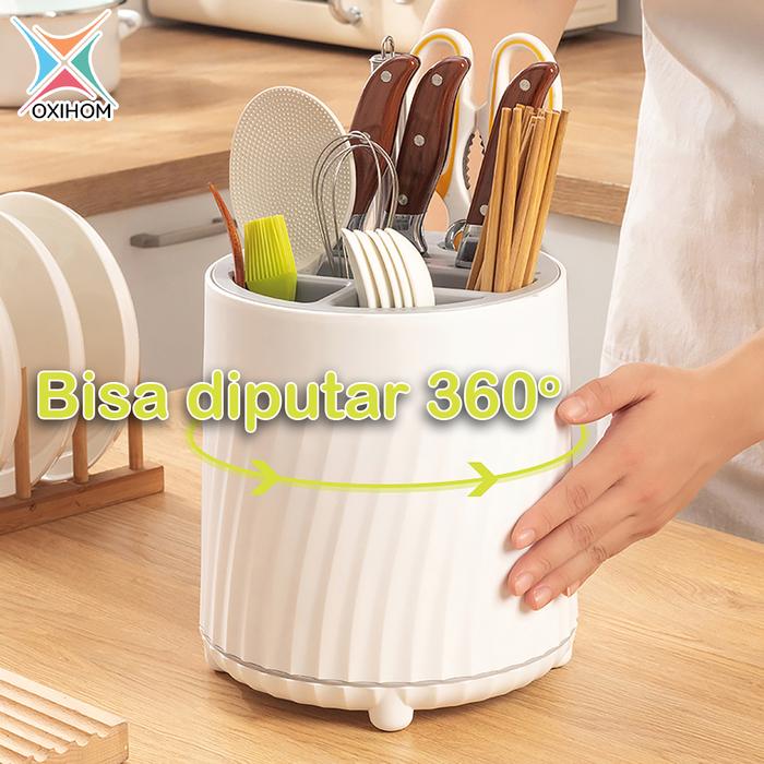 Oxihom Tempat Sendok Garpu Putar Tempat Pisau Rak Dapur Putar Plastik