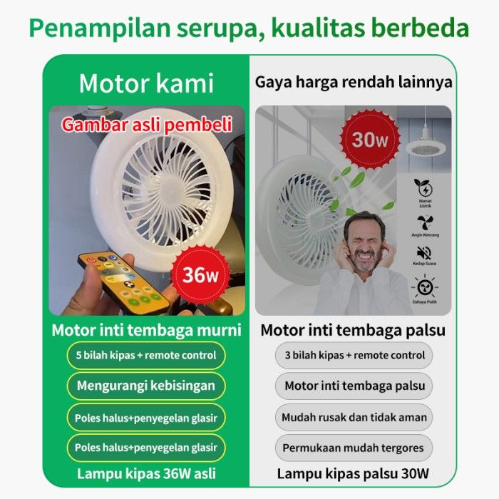 Lampu Kipas Angin Plafon Multifungsi Dengan Lampu 36W Fans Bohlam LED
