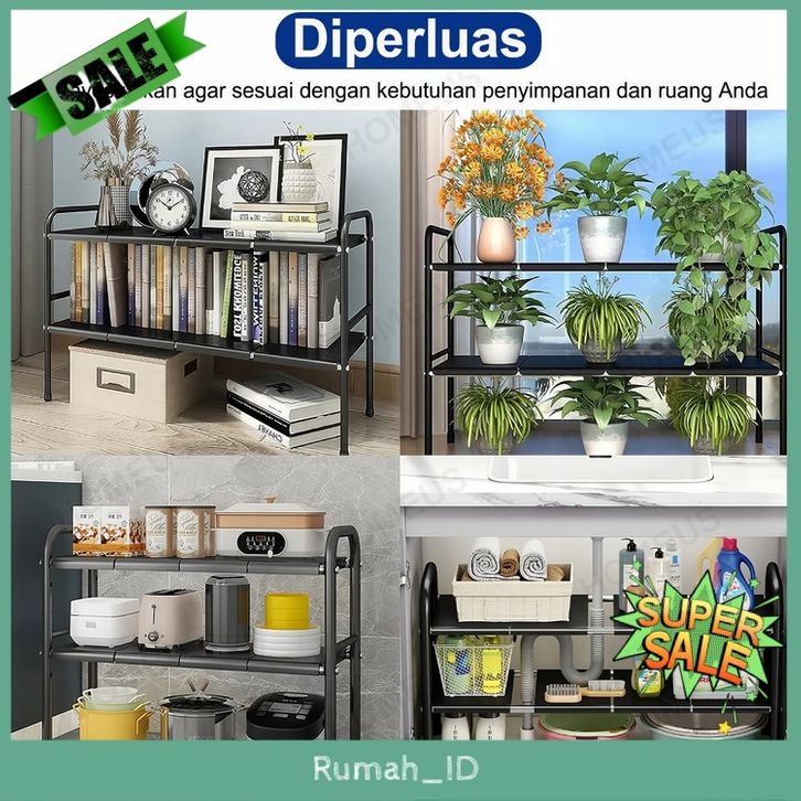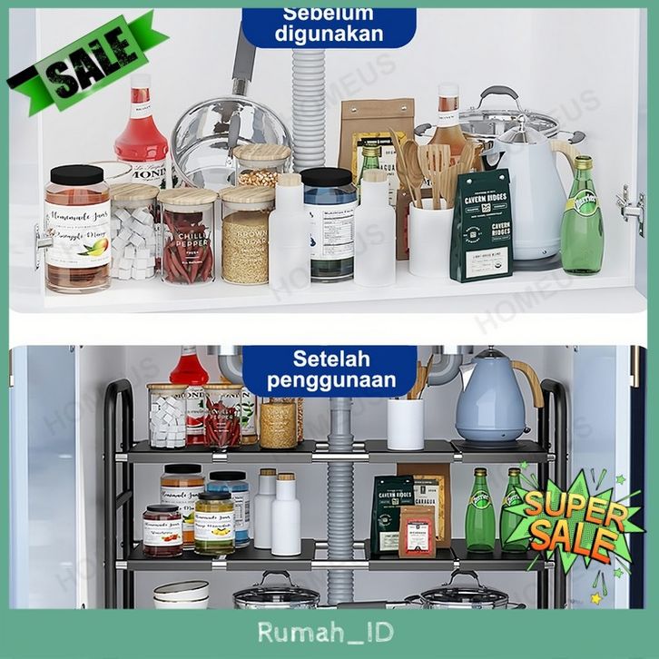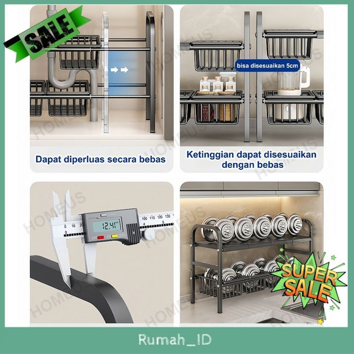 Homeus Rak Dapur Stainless Steel yang Dapat Diperluas Rak Dapur Dapur Rak Panci Rak Wastafel Rak Serbaguna