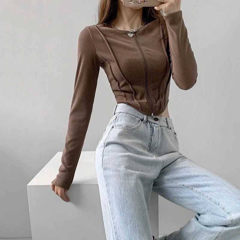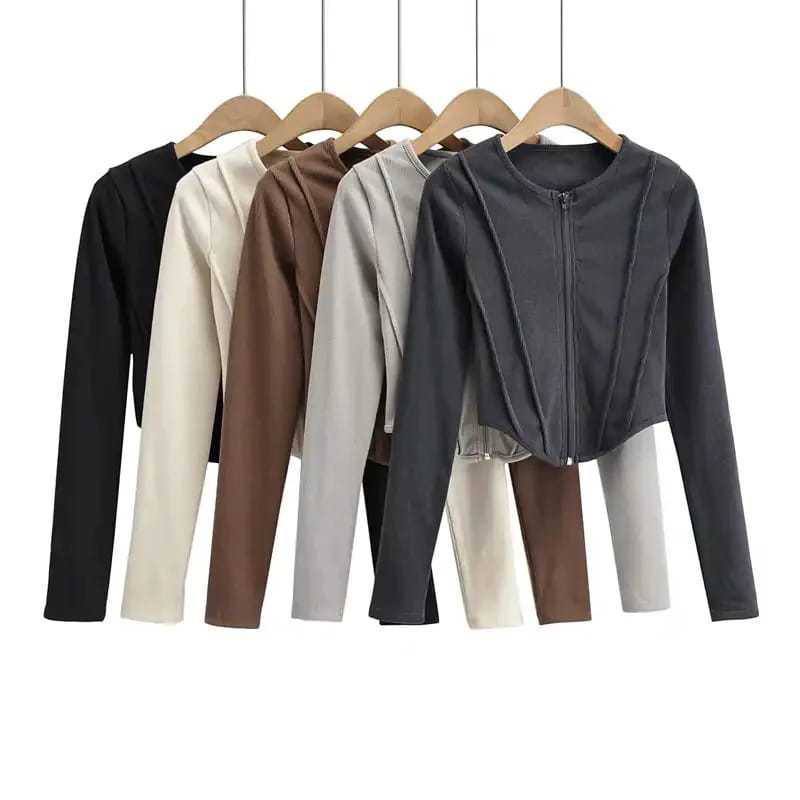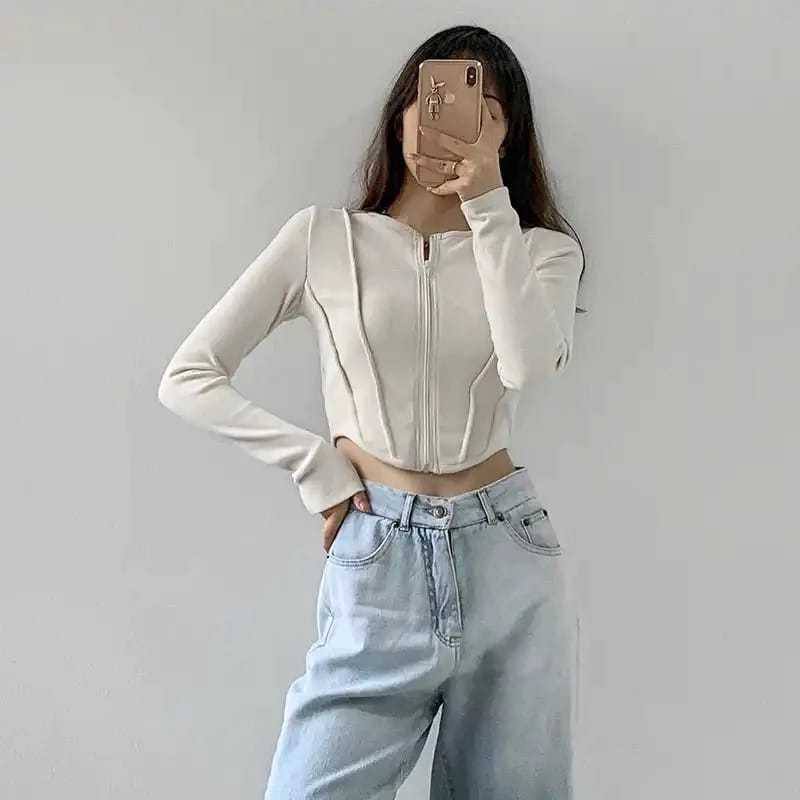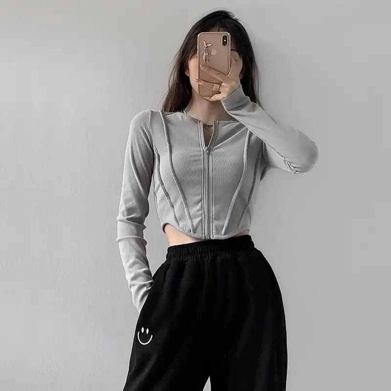 [ Premium ] Bianca Top Blouse Knitwear Zipper Crop High Quality Adem Halus Lembut Nyaman Dipakai Baju Atasan Knit Blus