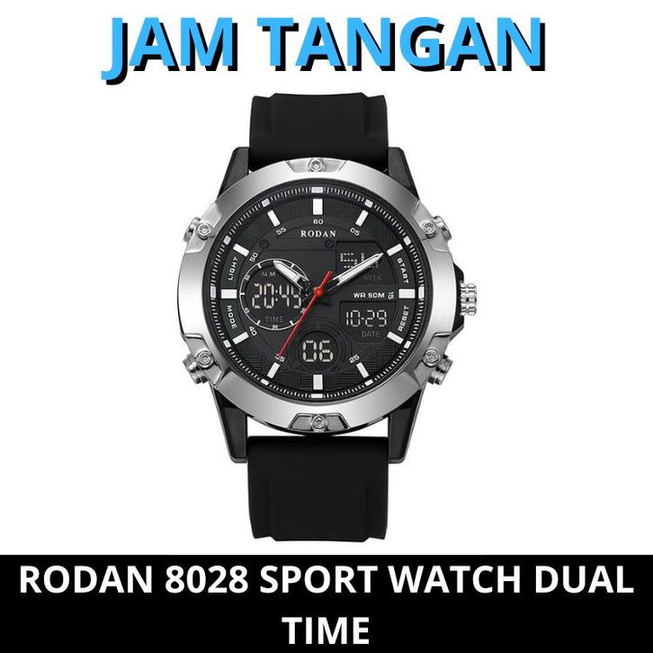Jam Tangan RODAN 8028 SPORT WATCH DUAL TIME WATER RESIST 5 ATM FREE BOX Jam Kaca Pria