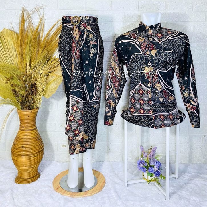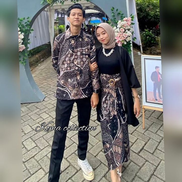Kebaya modern terbaru _Baju Couple Kemeja Batik Pria dan Rok Lilit Motif Asta Coklat / Couple Kemeja Lengan Panjang