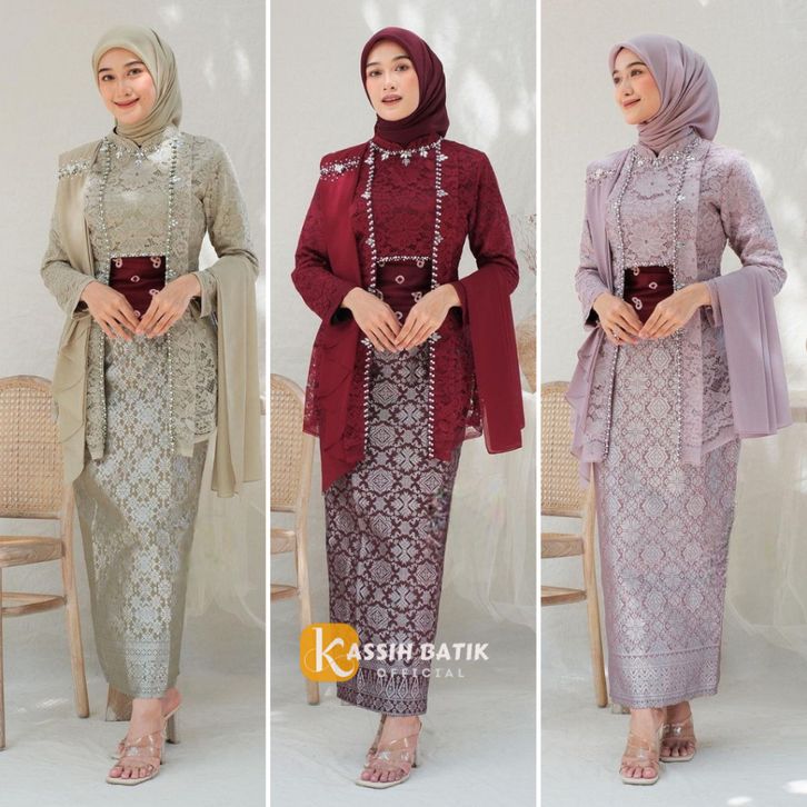 Kebaya modern terbaru Set Kebaya Kutu Baru Wisuda Modern Kebaya Set Tunik Lamaran Tunangan Batik Baju Couple Kondangan