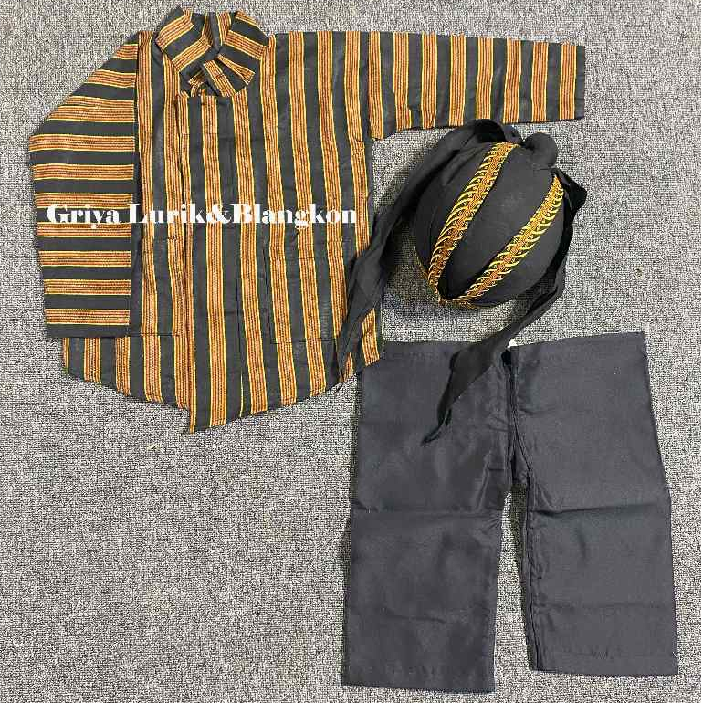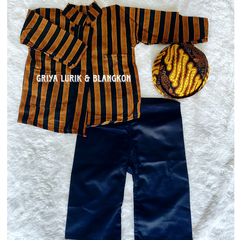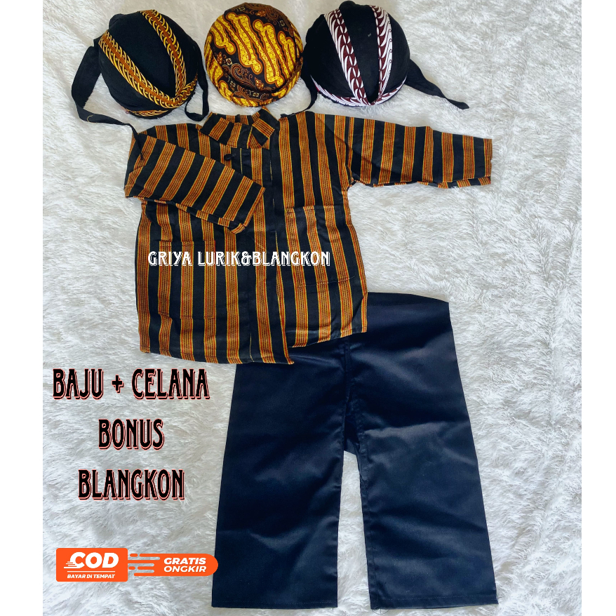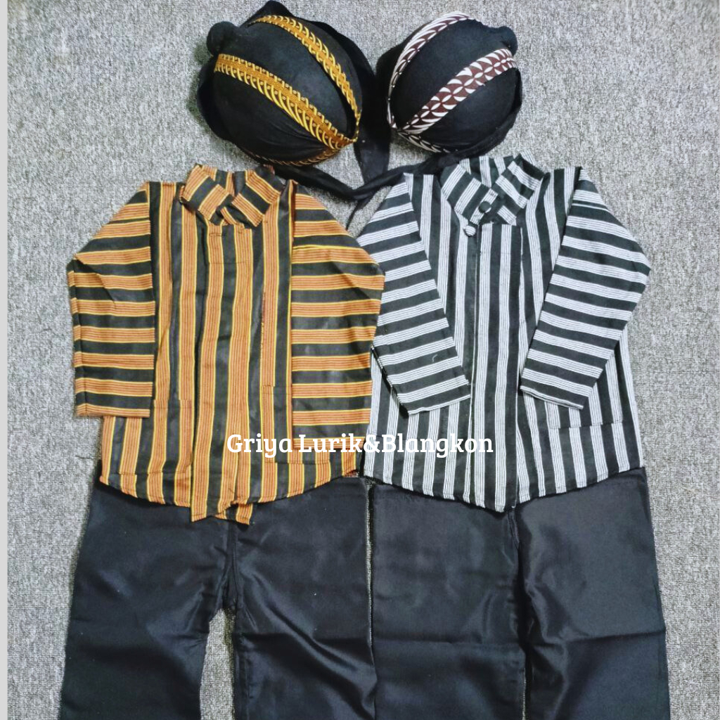 (FLASH SALE)Baju Lurik Jawa anak set Celana + blangkon / setelan baju adat anak / Setelan Lurik Anak