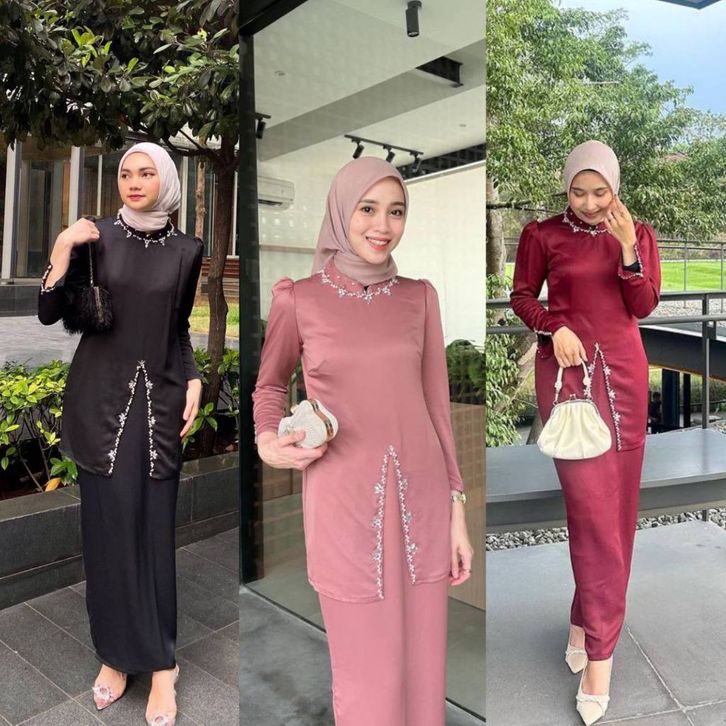 Kebaya modern terbaru (ADA JUMBO) Oneset Elliza Kurung Melayu Dress Setelan Wanita Baju Kondangan Modern Full Payet