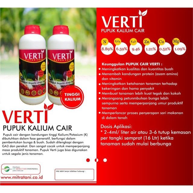 Pupuk Bunga Buah VERTINE K Tinggi Kalium 1 Liter