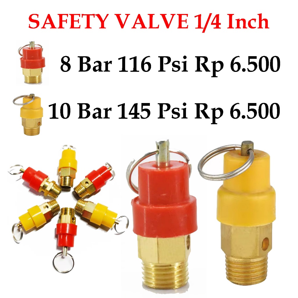 Safety Valve kompresor mini 1/4" Pengaman Tekanan compressor 1/4 Inch 8 dan 10 bar
