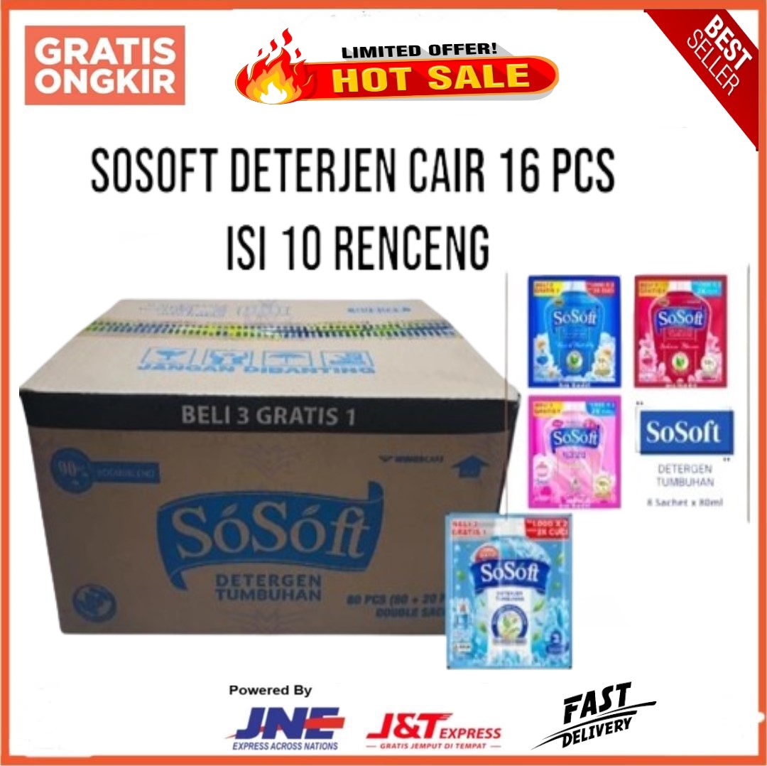 SOSOFT DETERJENT TUMBUHAN SACHET 80ML 1 DUS - GRATIS ONGKIR