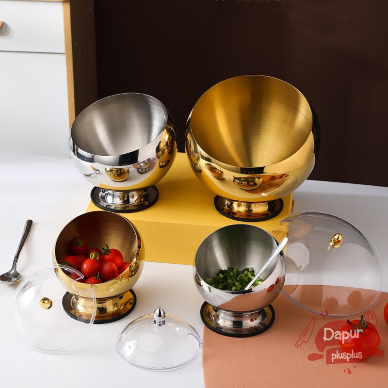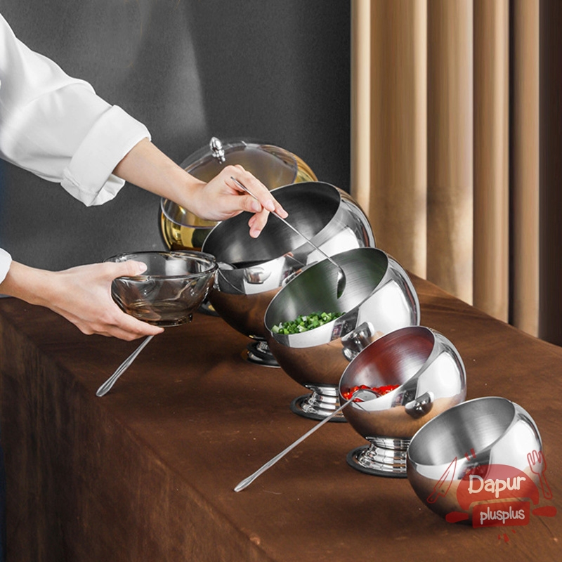 Mangkok Hidangan Prasmanan Korea Stainless Tebal – Mangkuk Sup / Sop Silver Emas Korean