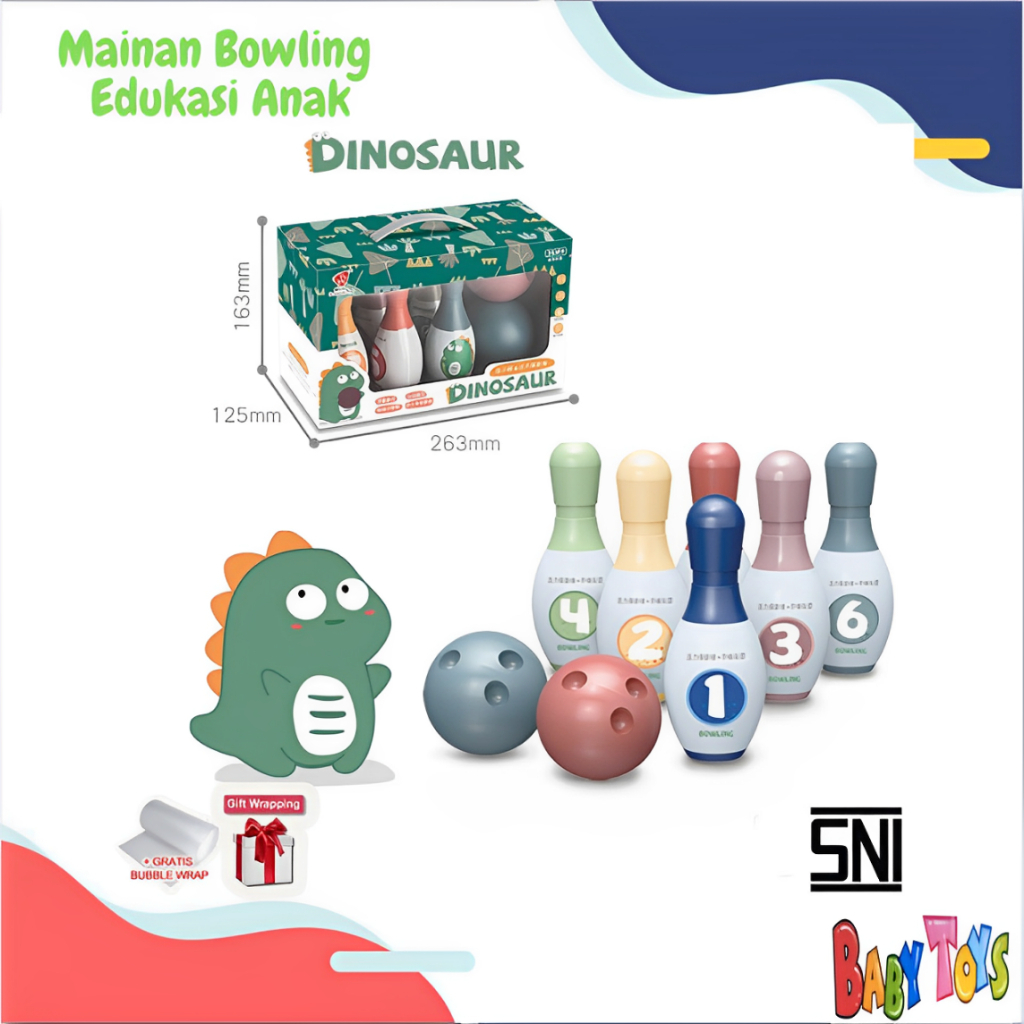 BabyToys Mainan Anak Bola Bowling Ball Ukuran Besar Set Pin Bowling Edukasi Angka Motif Dinosaurus Laki Laki Perempuan