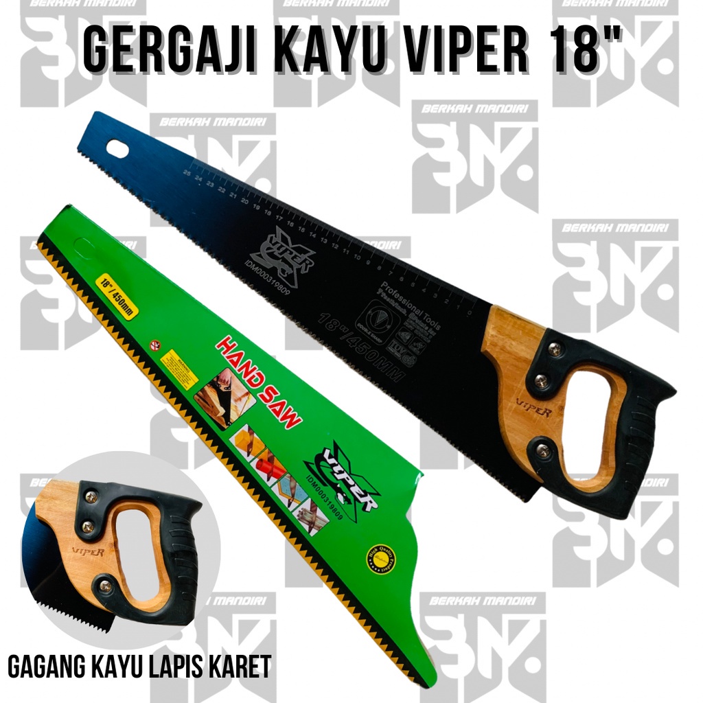 Gergaji Kayu|Hand Saw Super Tajam Viper 18" Gagang Kayu Lapis Karet/Fiber Murah